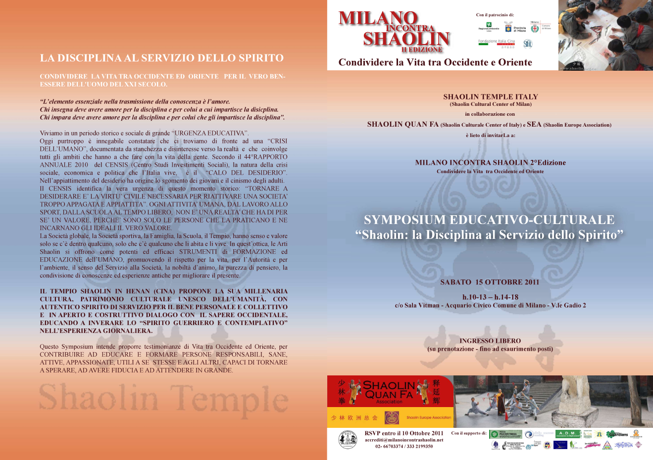 • “CREARE UN PONTE FRA ORIENTE ED OCCIDENTE. SHAOLIN THE WORLD SERVICE. "